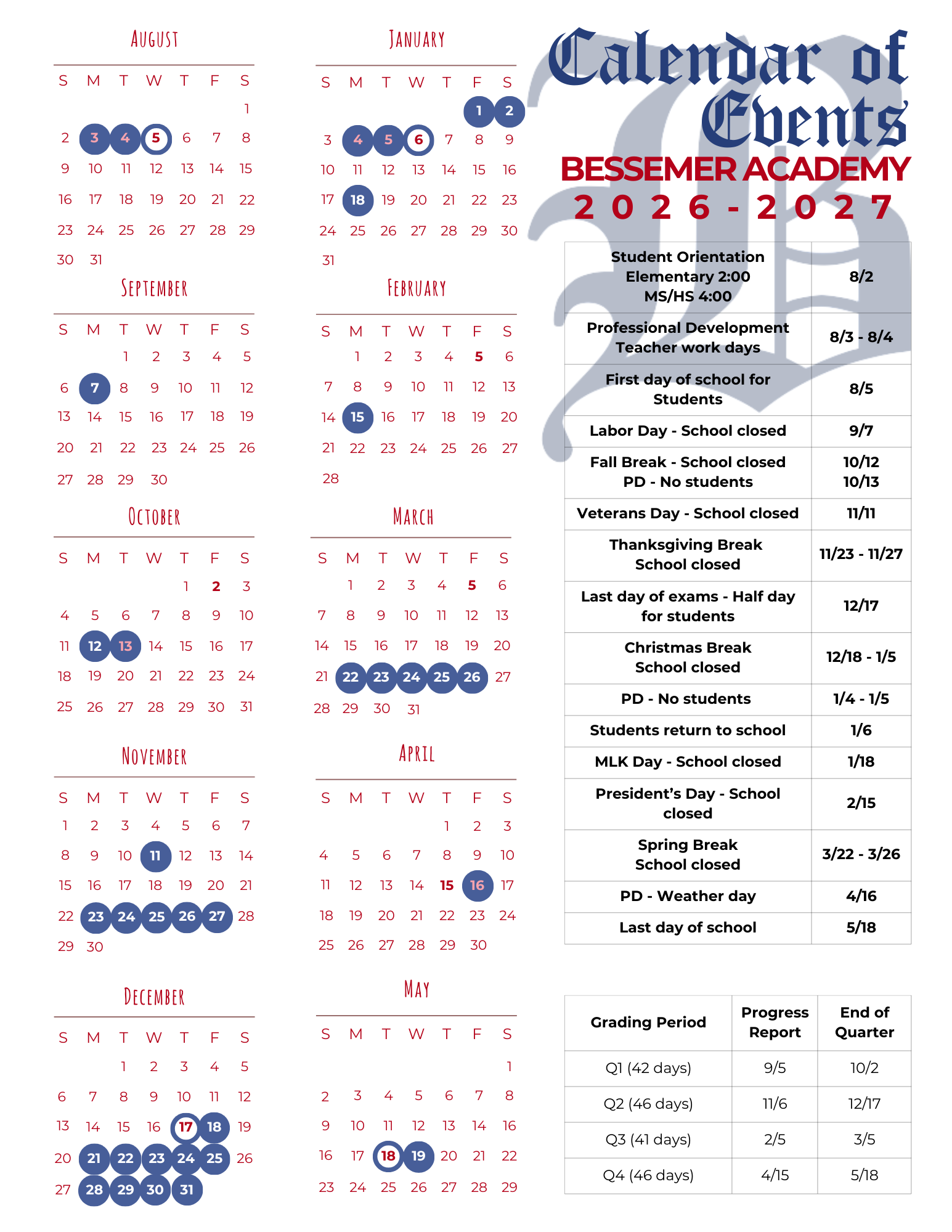 Parents and students can access the full calendar of events through FACTS Family Portal (click the “check grades” icon on the home page).